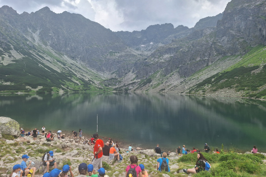 Wstaliśmy rano o 6:30 wyszykowaliśmy się na 7.30 na śniadanie. Po śniadaniu poszliśmy do autokaru, gdzie Pan przewodnik Janusz opowiadał nam o miejscu do którego zmierzaliśmy. Po zapakowaniu weszliśmy z przewodnikiem do Tatrzańskiego Parku Narodowego, aby zacząć swoją podróż do Morskiego Oka. Po jakimś czasie doszliśmy do Wodogrzmotów Mickiewicza, przy których zatrzymaliśmy się. Gdy w końcu doszliśmy o Morskiego Oka, mogliśmy odpocząć i pooglądać przepiękne widoki. Po długim odpoczynku wróciliśmy do autokaru, a następnie do ośrodka. W ośrodku zjedliśmy obiadokolację i pograliśmy w piłkę nożną. Po tak długim dniu nikt nie miał problemu z zaśnięciem. I tak minął nasz piąty dzień na kolonii.