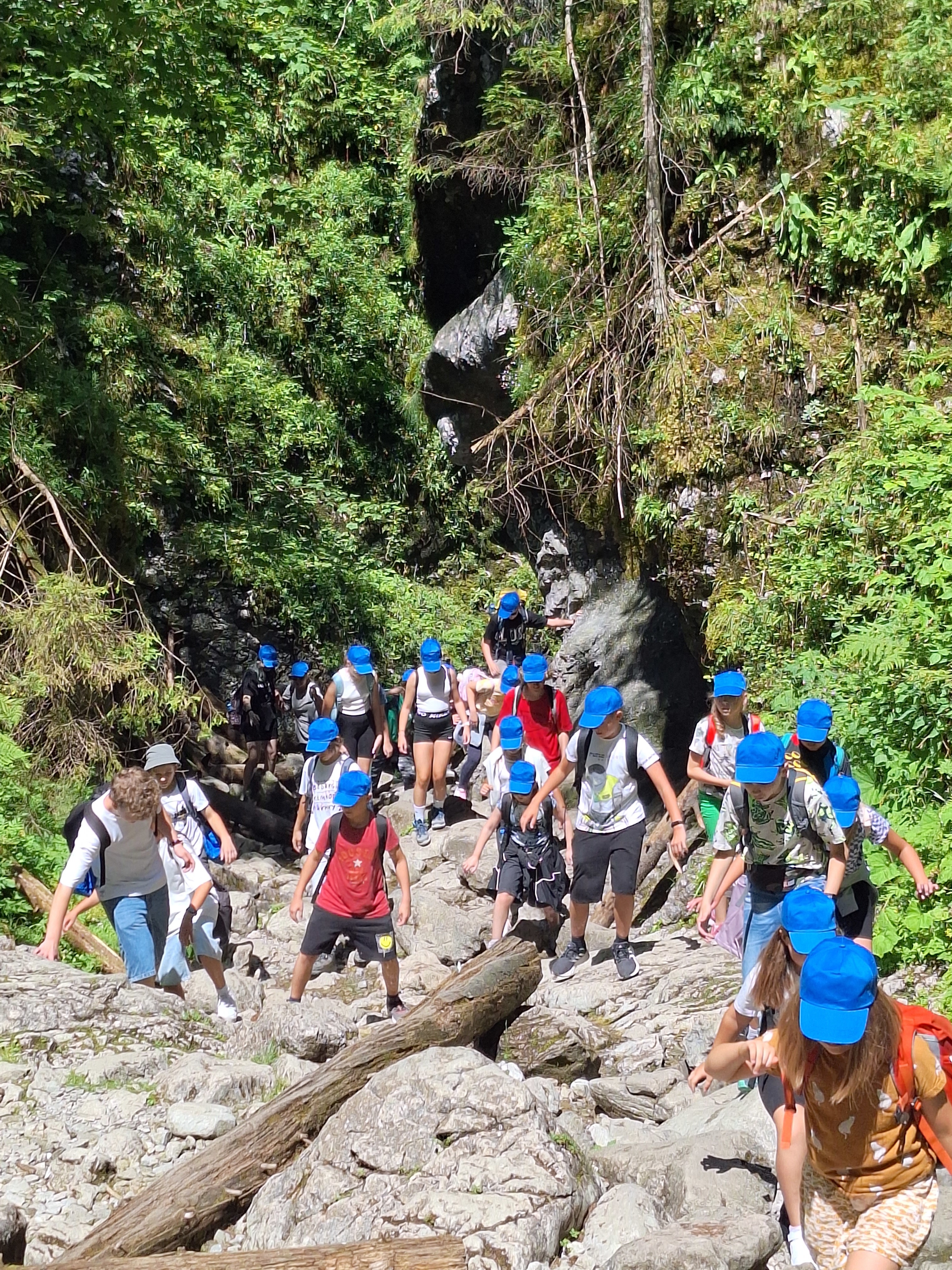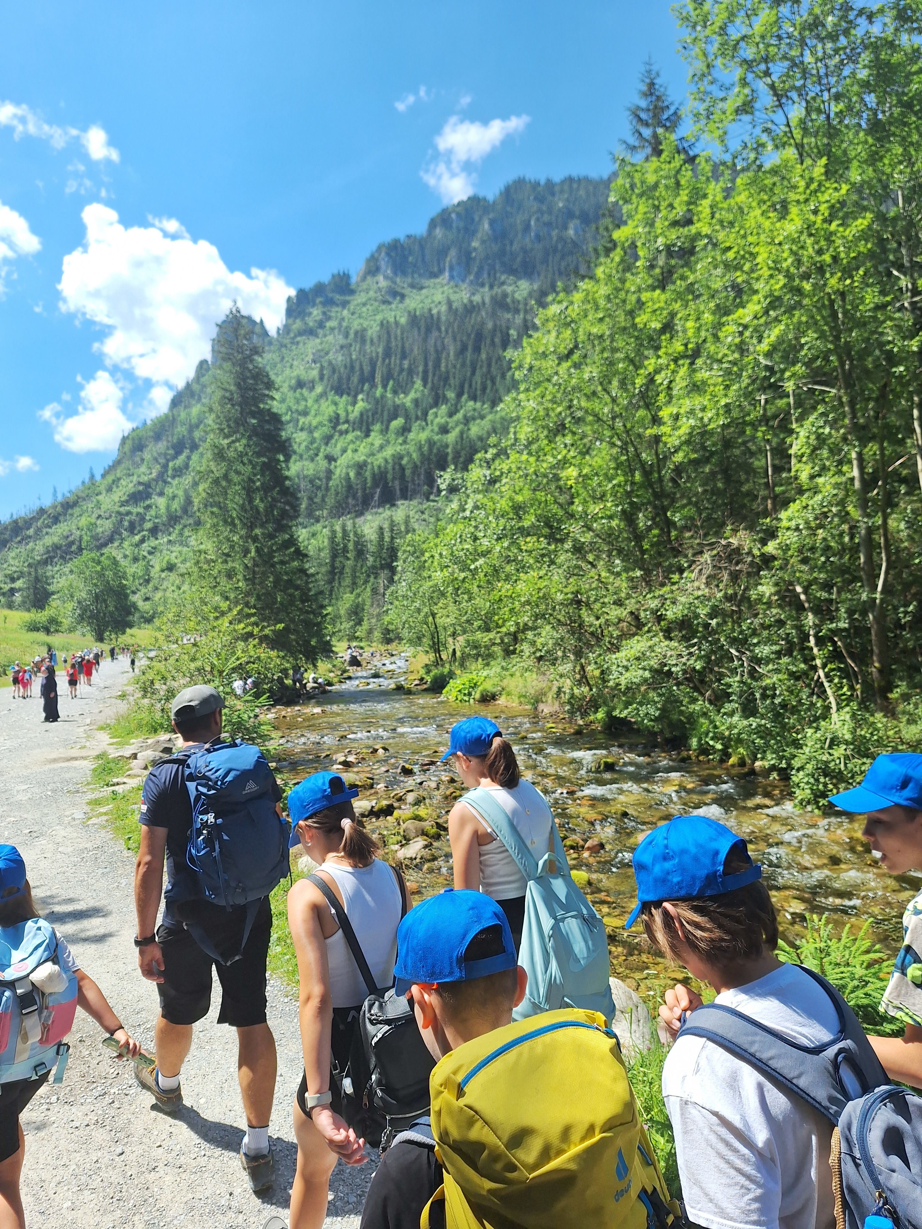 Dzisiaj było super! Ale rano obudzono nas o 6.30 !!!! Niektórzy obudzili się wcześniej, a inni nie chcieli wstać. Potem przygotowaliśmy się na wycieczkę w góry. Zbiórkę mieliśmy o 7.35. Pan przewodnik o imieniu Michał opowiedział nam o różnych ciekawostkach. Gdy dojechaliśmy na miejsce wszyscy zachwycili się widokami. Było naprawdę pięknie, nie da się tego opisać. Te piękne drzewa i ten ptak, który tak pięknie błyszczał się w środku dnia. Szliśmy i szliśmy parę minut, gdy nagle doszliśmy do budki z oscypkami. Przy budce były barany i owce - były śliczne (słodkie). Zapchałyśmy sobie całą galerię zdjęciami. Poszłyśmy dalej razem z całą grupą. Doszliśmy do potoku. Pan przewodnik opowiadał o potoku, głównie o tym, że woda jest tam czysta niż w kranach w Warszawie. Woda miał temperaturę -8 stopni. Gdy doszliśmy do bardzo dużych kamieni - niektórzy po nich skakali, np my :-; Nareszcie odpoczynek ! Zaraz wchodzimy do jaskini! Jak weszłyśmy to miałyśmy ulgę, że nie spadłyśmy. Było ślisko więc trzeba było uważać! Nie każdy wszedł. Gdy komuś spadła butelka ja ją podniosłam i wyobraziłam sobie, że jestem jaskiniowcem, a butelka to maczuga. Walczyłam ze smokiem, niestety na niby