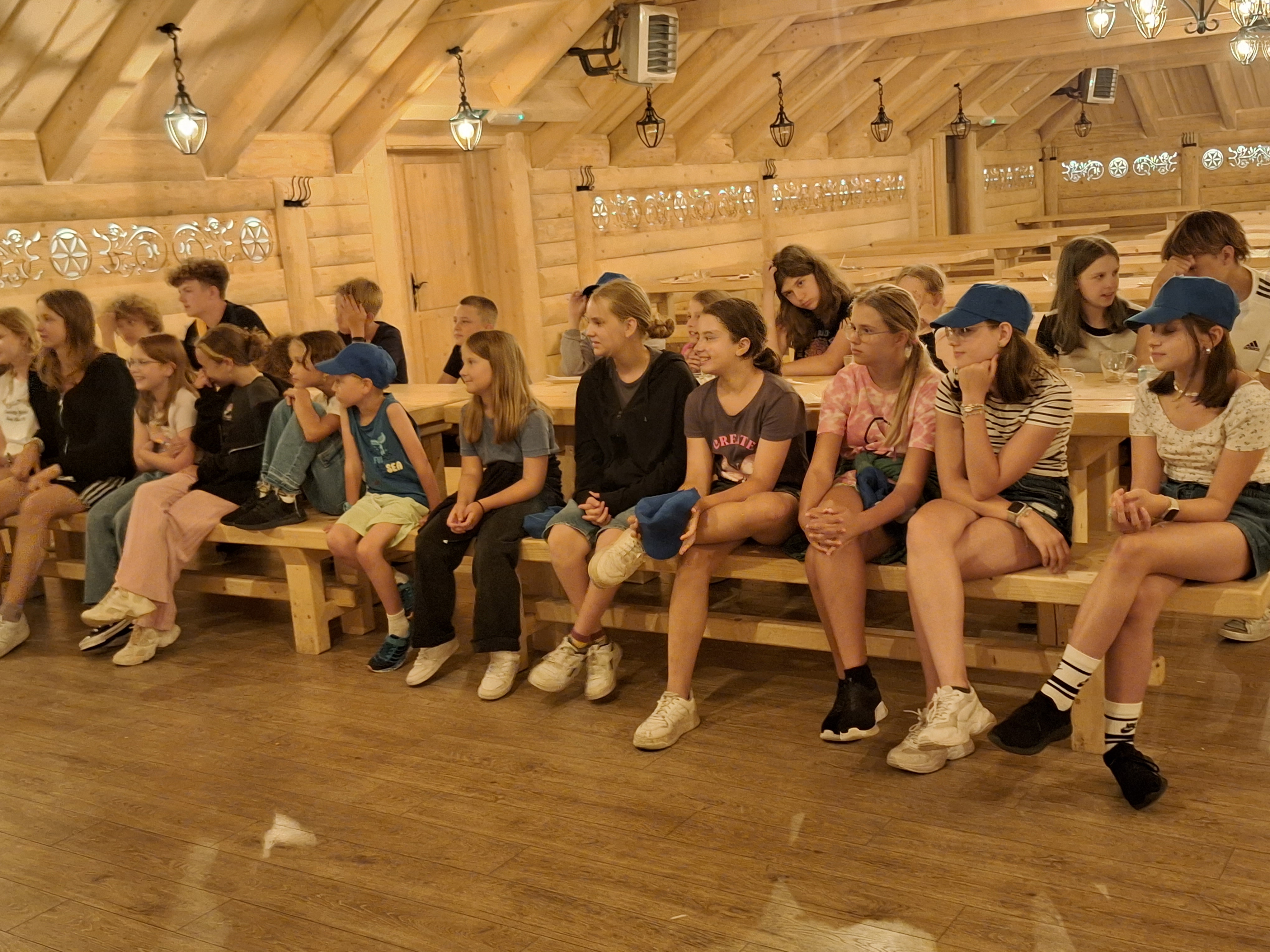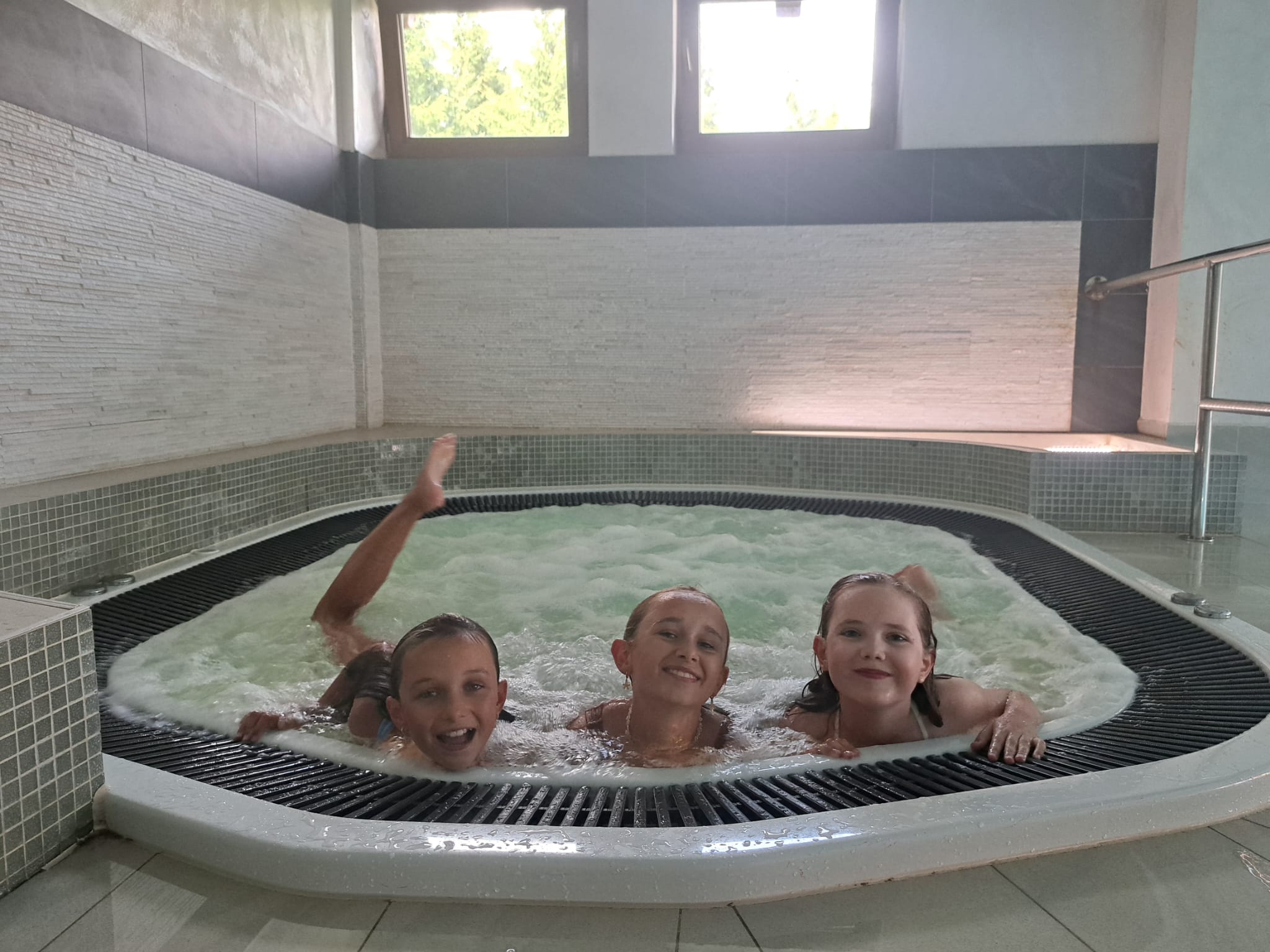 Dzisiaj wstałam z koleżankami i kolegami. Wyszykowaliśmy się i poszliśmy na śniadanie. Po śniadaniu była komisja czystości oraz gry i zabawy w naszej sali. Przed obiadem poszliśmy pakować się na Termy Chochołowskie. Autokarem jechaliśmy około godziny, ale nie nudziliśmy się. Na miejscu poszliśmy włożyć klapki i mogliśmy już pójść do przebieralni. Zanim weszliśmy na baseny wychowawcy powiedzieli nam jakie są baseny, gdzie możemy pójść i wytłumaczyli nam regulamin. Każde dziecko musiało patrzeć na zegarek żeby nie spóźnić się na zbiórkę o 17.30. Na terenie term znajdowało się pięć małych jacuzzi, jedno duże, dwa baseny obok wyjścia na dwór, jeden basen na dworze, trzy małe brodziki, jeden mały basen ze zjeżdżalnią, jeden basen z torami i dwie strefy dziecka. Jak była zbiórka, poszliśmy do szatni przebrać się. Kiedy wróciliśmy z szatni wkładaliśmy nasze buty, a chowaliśmy klapki do torby. Zbieraliśmy się do autokaru żeby pojechać do hotelu. W końcu przyjechaliśmy na miejsce i mogliśmy coś zjeść bo po basenie byliśmy głodni. Na kolację mamy szwedzki stół i możemy brać co chcemy. Po kolacji poszliśmy do sali grać w mafię. Niektóre dzieci nie chciały grać w mafię i miały gry planszowe. Potem poszliśmy spać.