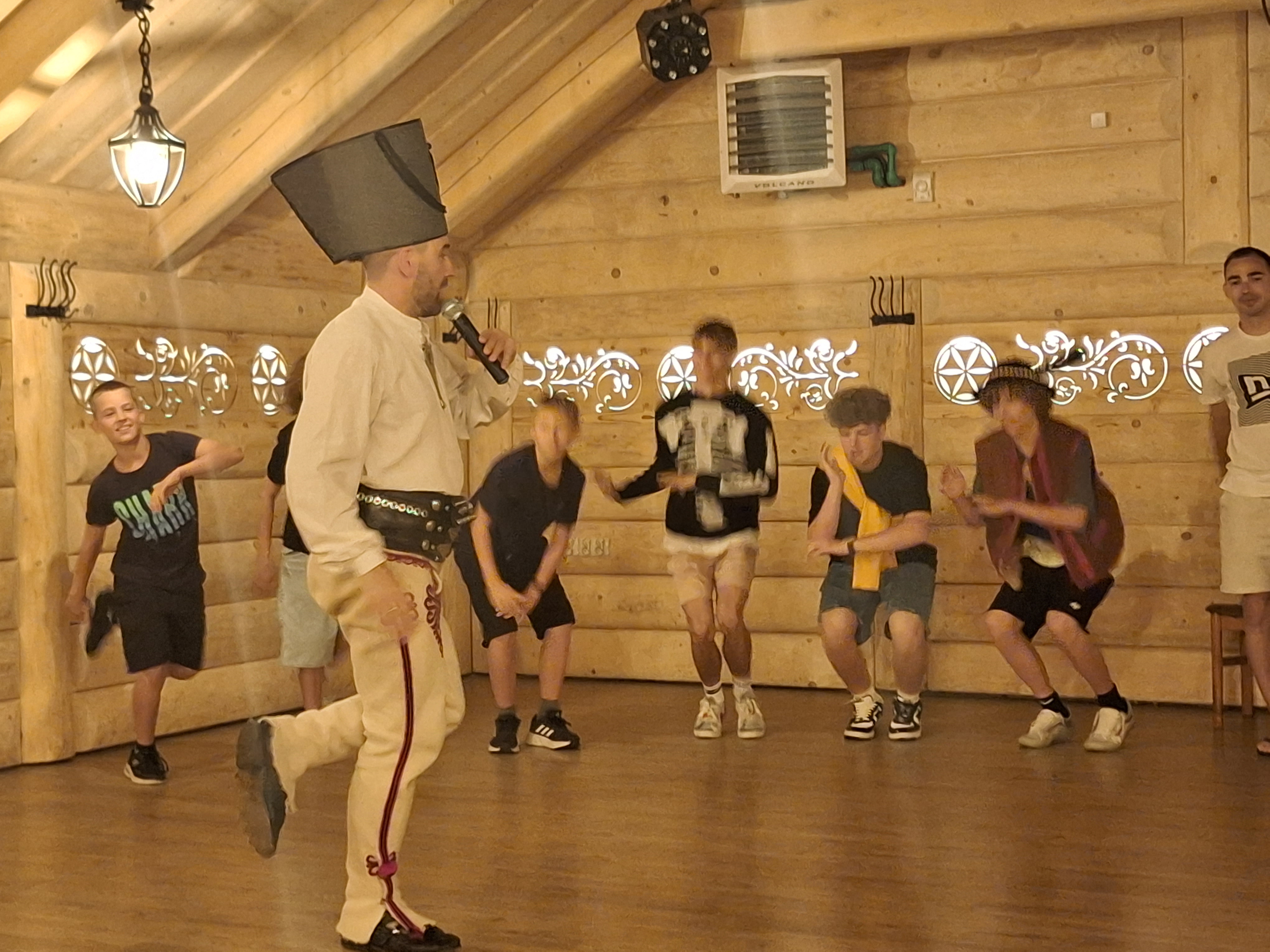 Poranek rozpoczęliśmy od pobudki o 8.00 rano. Po wyszykowaniu się zeszliśmy na przepyszne śniadanie. Gdy zjedliśmy śniadanie mieliśmy dłuższą przerwę, następnie wyczekiwaliśmy na grę terenową - "50". Sprawiła nam ona dużą frajdę, a po jej zakończeniu wszyscy uczestnicy dostali nagrody. Potem o godz. 14.00 poszliśmy zjeść obiad. Następnie udaliśmy się na boisko i urządziliśmy różne zabawy takie jak zbijak i piłka nożna. Po kilku godzinach świetnej gry zjedliśmy dużą kolację. O godz. 20.00. Zawitali do nas tutejsi górale ze swoimi instrumentami. Wszyscy mogliśmy posłuchać ich zagrać na śpiewu i sami spróbować zagrać na ich sprzętach. Po godzinie spotkania z nimi udaliśmy się do swoich pokoi na zasłużony odpoczynek po udanym dniu.